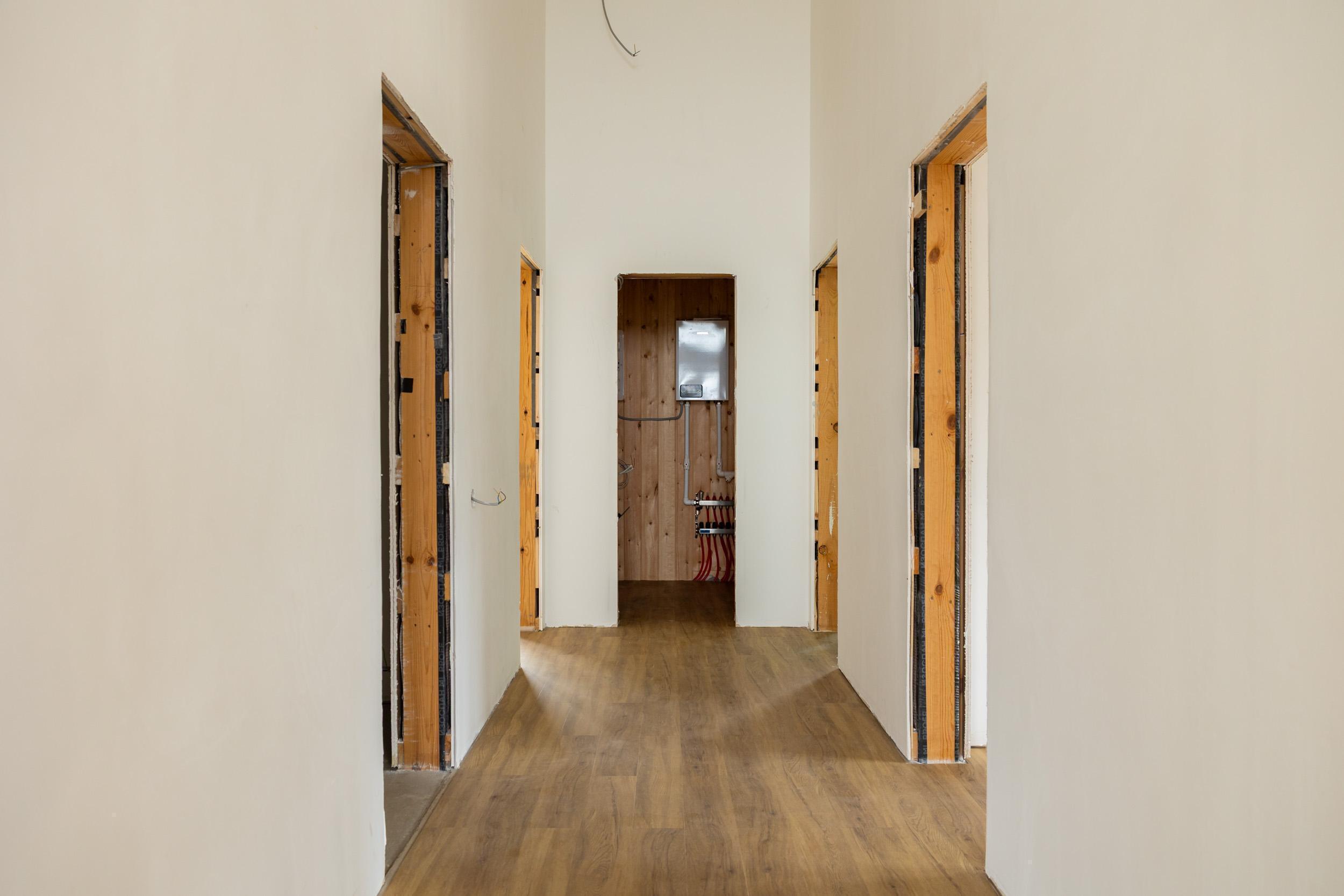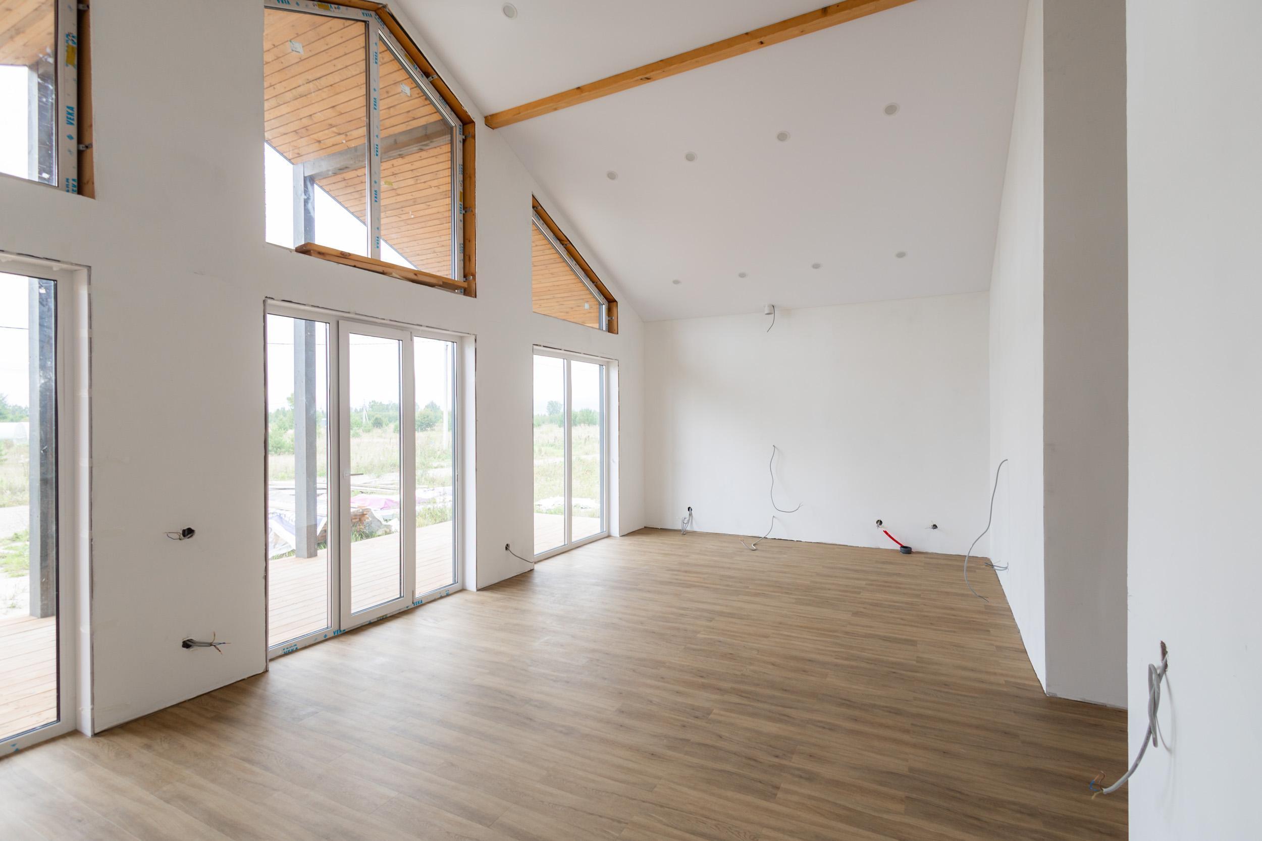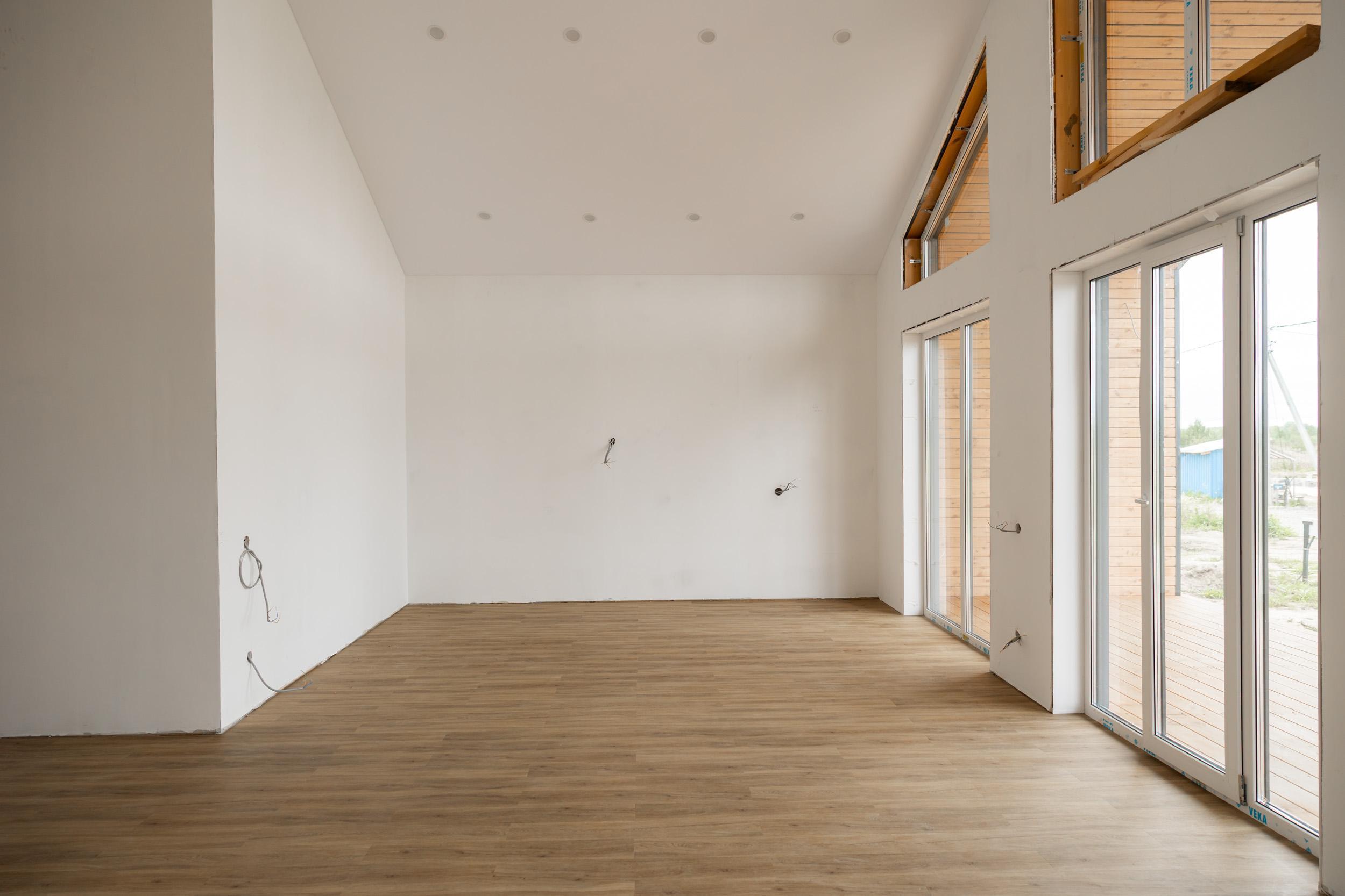 — Евровагонка (окрашивайте в ваш цвет!), натяжные потолки с LED-светом, ламинат, двери — просто добавьте личные вещи!