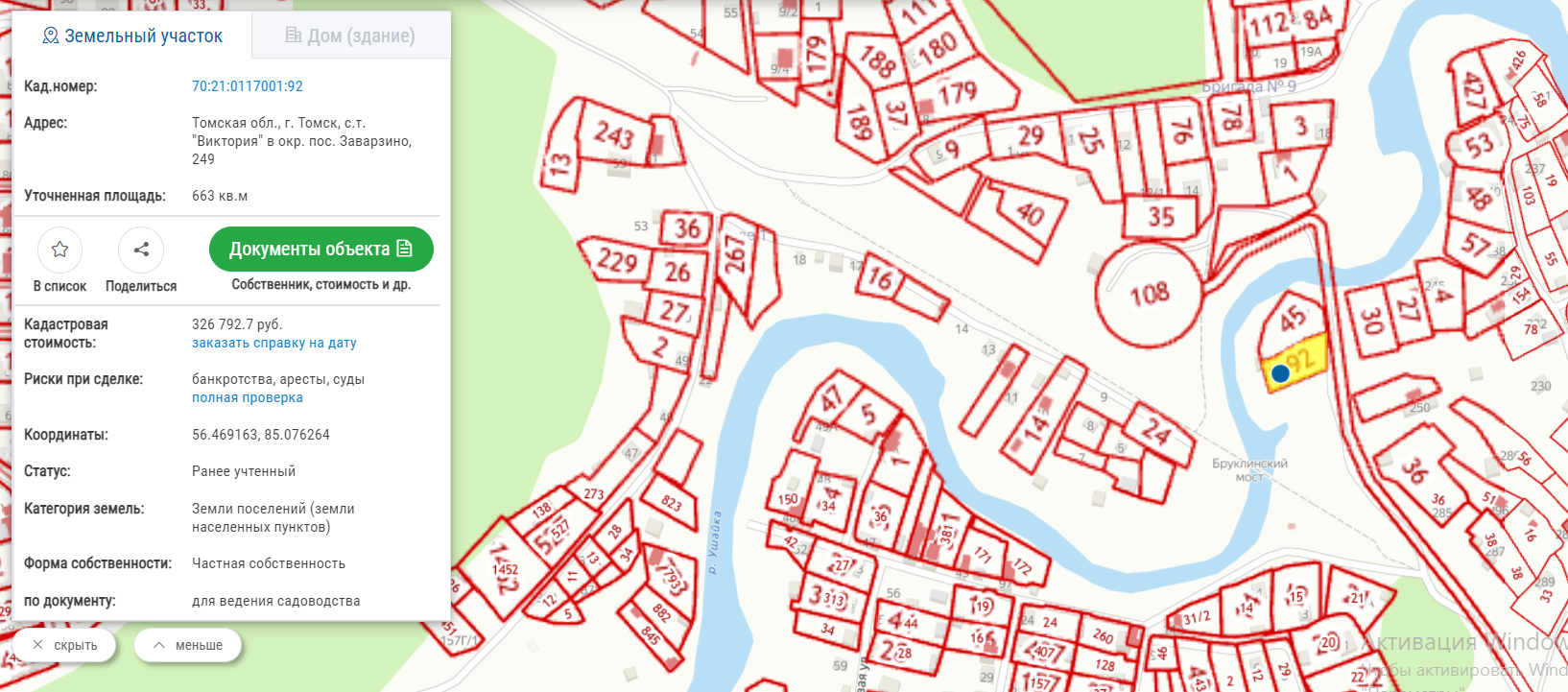 • Кадастровый номер: 70:21:0117001:92 — документы прозрачны, участок в собственности.