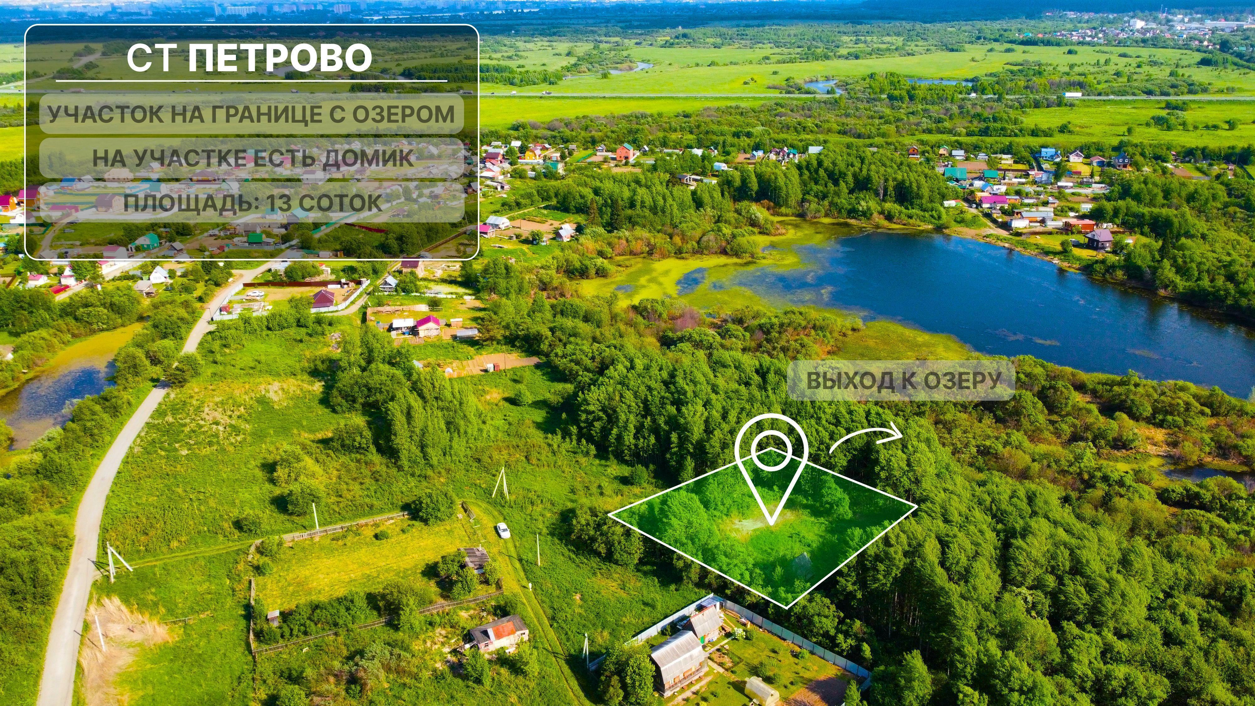 Продается отличный прямоугольный участок 13 соток с выходом к водоему в перспективном месте - с.т. "Петрово", уч. 197, 198